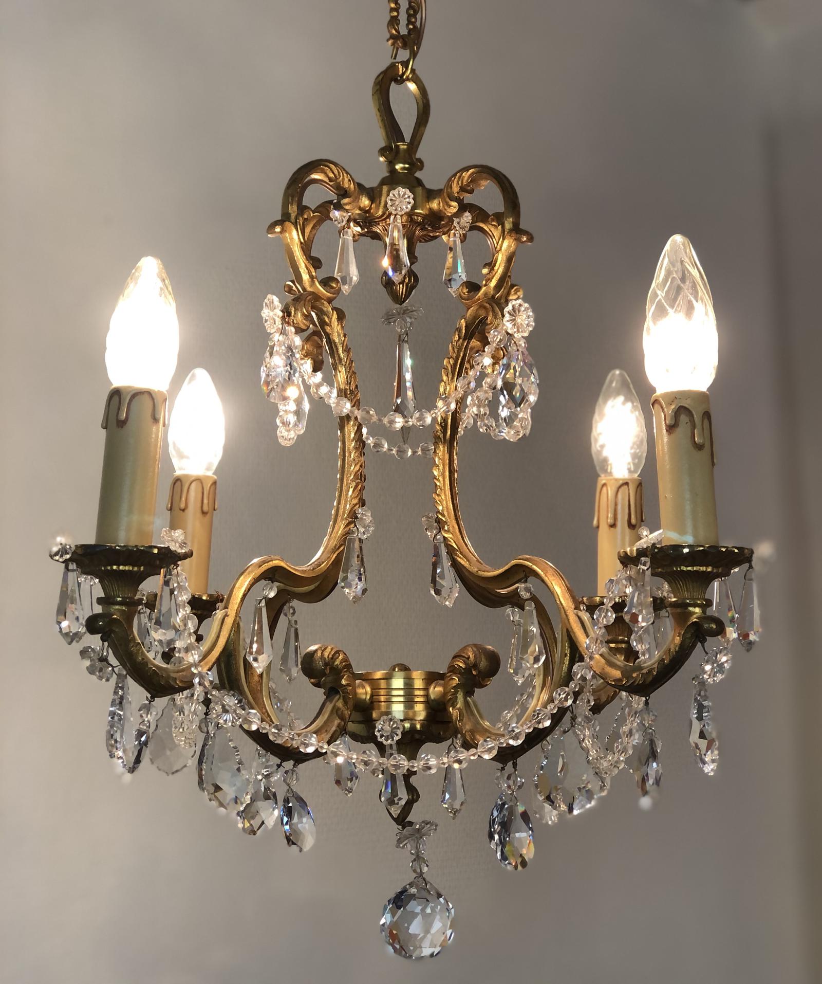 Vintage French Chandelier 4 Arm Crystal Ceiling Light