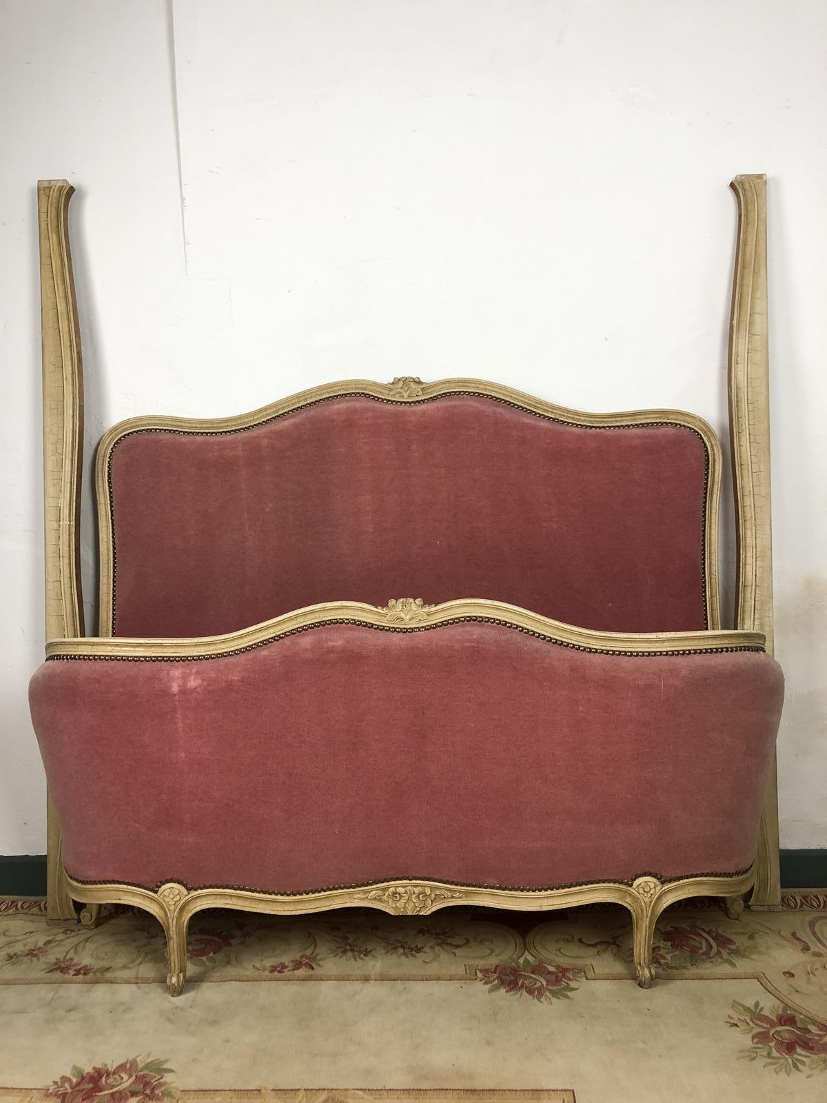 Vintage French Demi Corbeille Upholstered Bed Frame