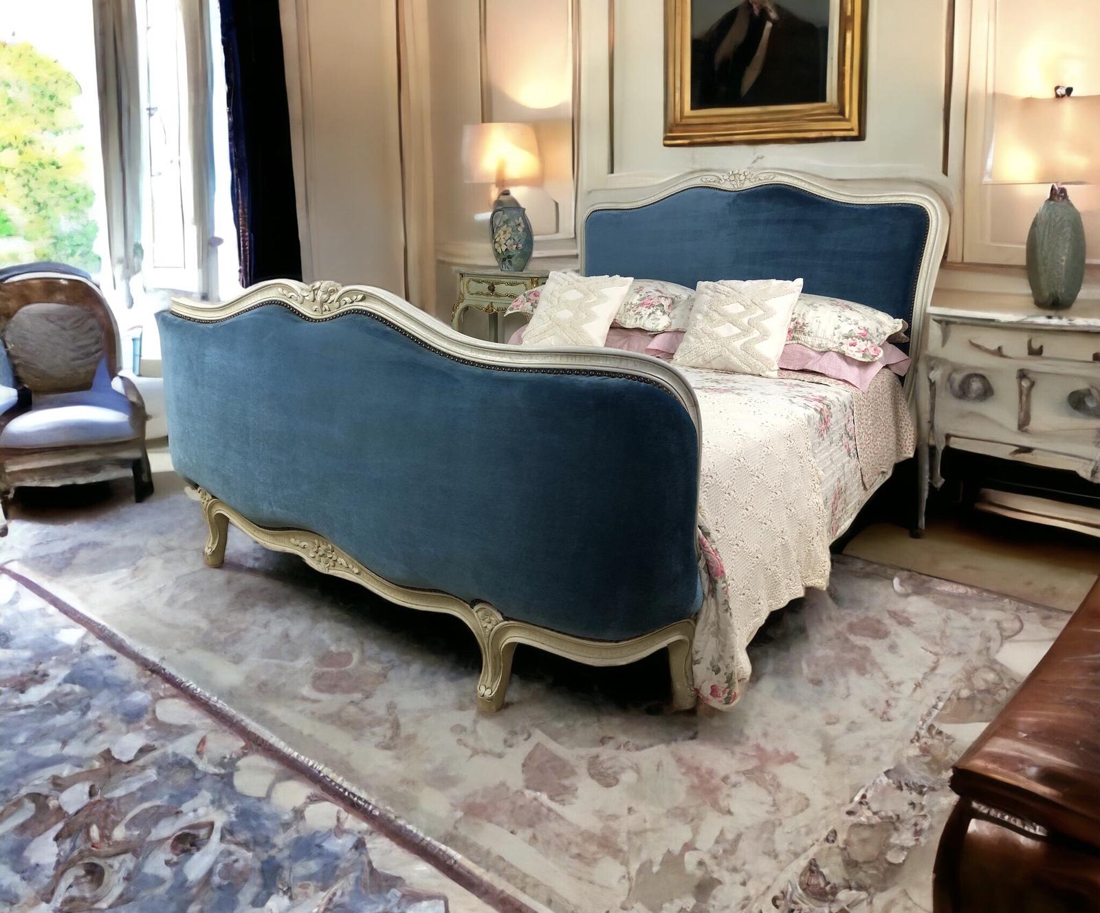 Vintage French Demi Corbeille Upholstered Double Bed
