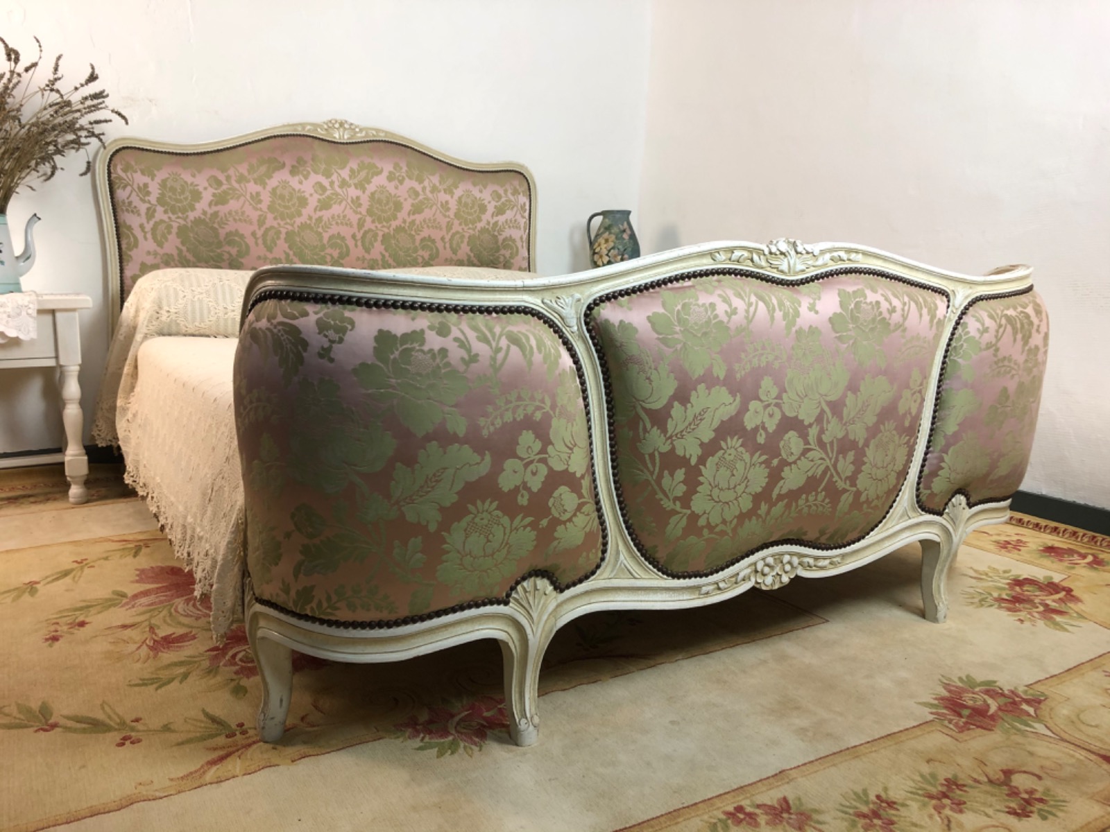 Vintage French Demi Corbeille Upholstered Double Bed Frame
