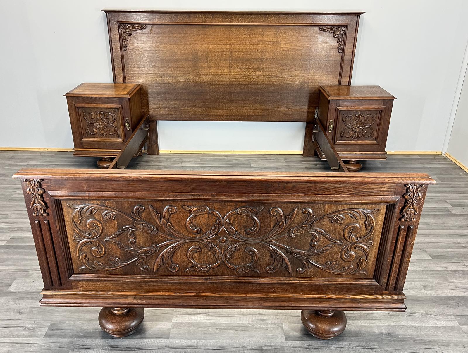 Vintage French Double Bed & Nightstands Hand-carved Bedroom Set (1 of 14)