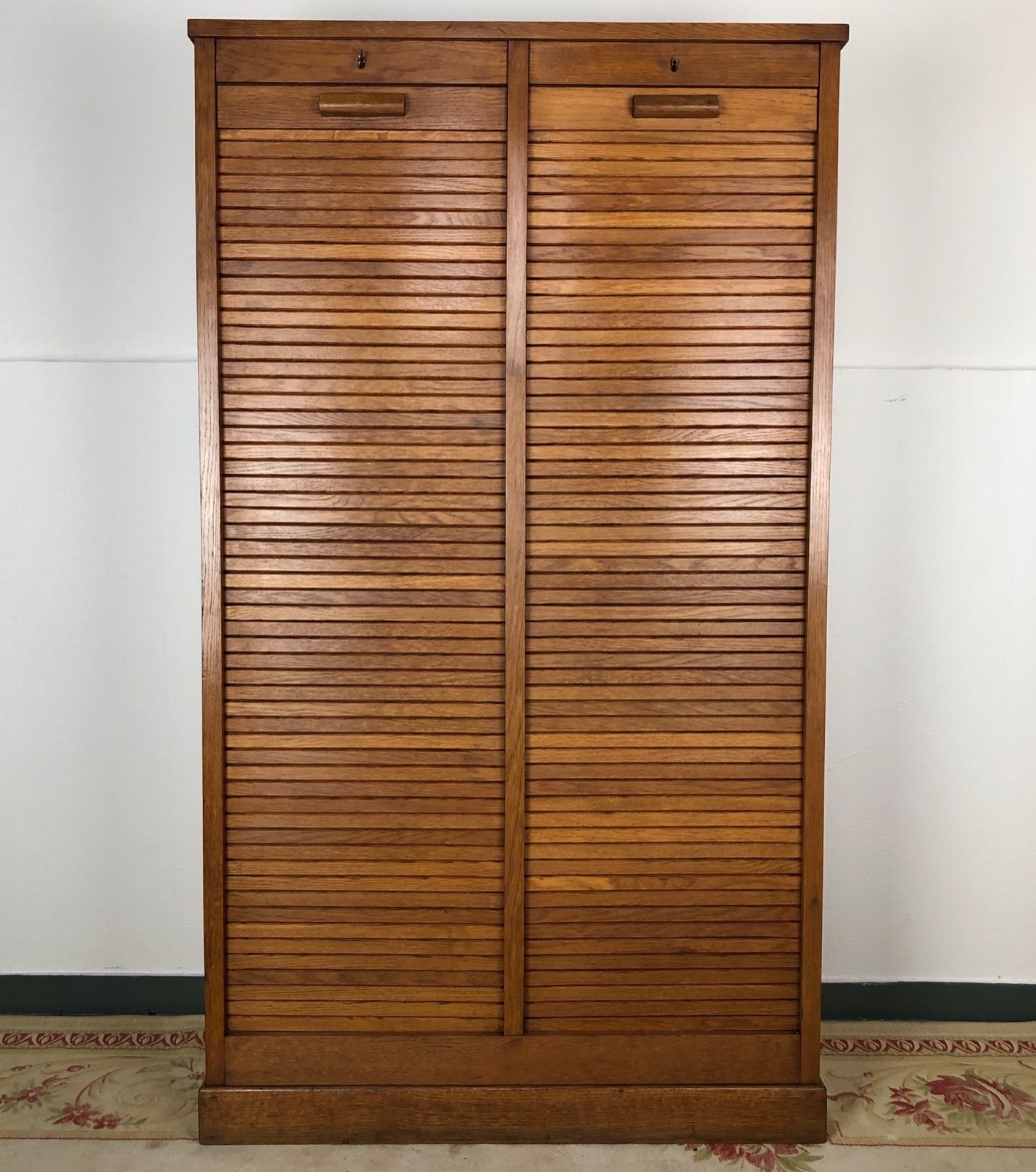 Vintage French Double Filing Cabinet Tambour Roller Shutter