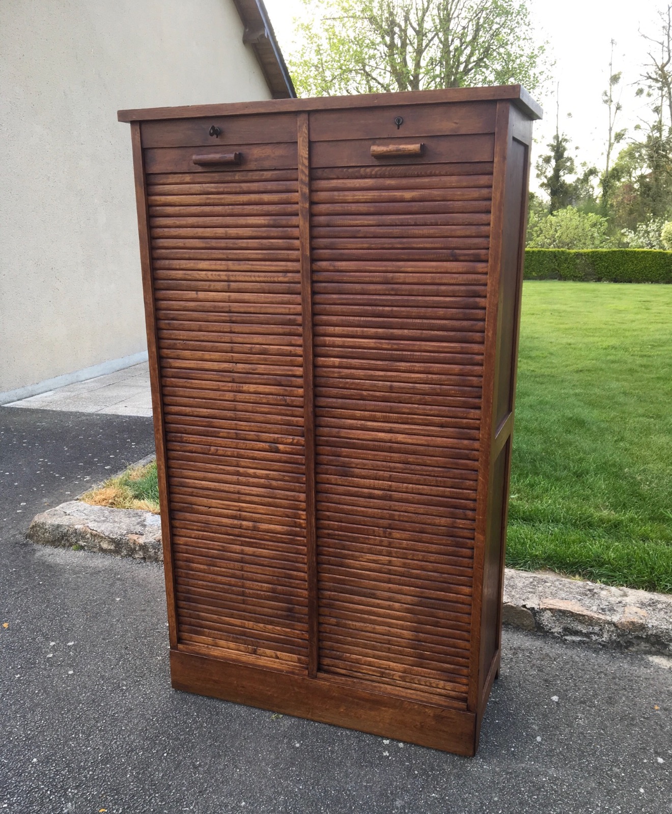Vintage French Double Filing Cabinet Tambour Roller Shutter