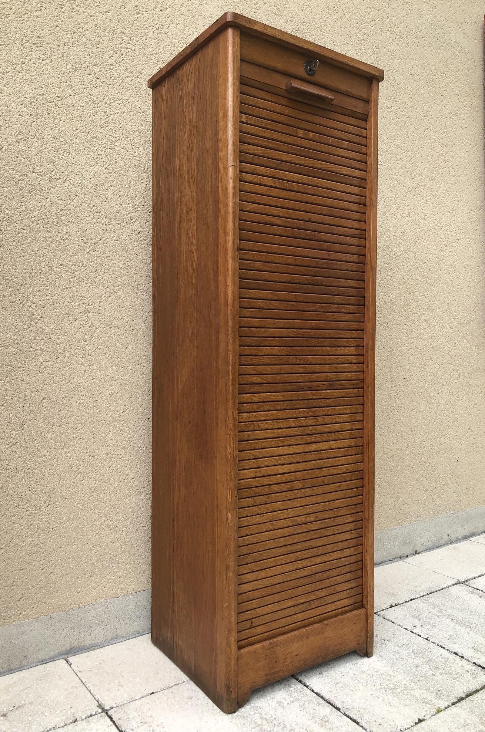 Vintage French Filing Cabinet Oak Tambour Roller Shutter