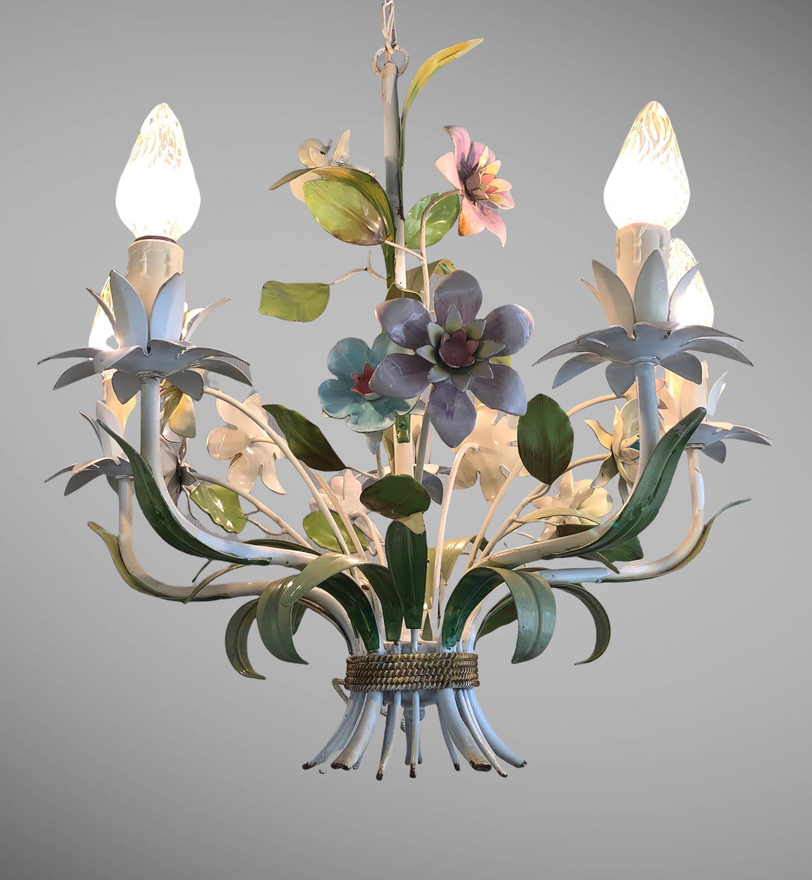 Vintage French Floral Toleware Ceiling Light Chandelier