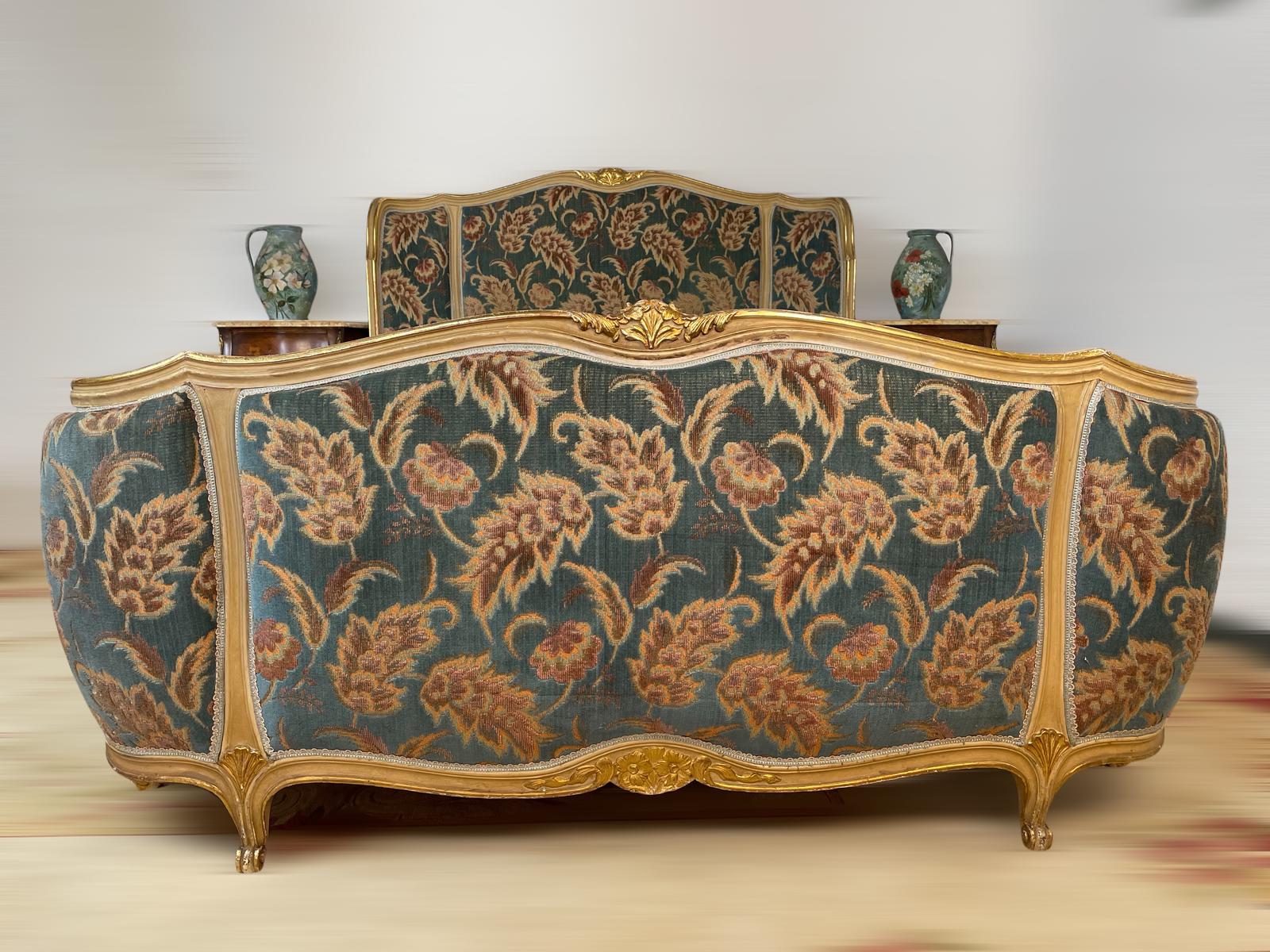 Vintage French Full Corbeille Louis XVI Style Gilt Double Bed Frame