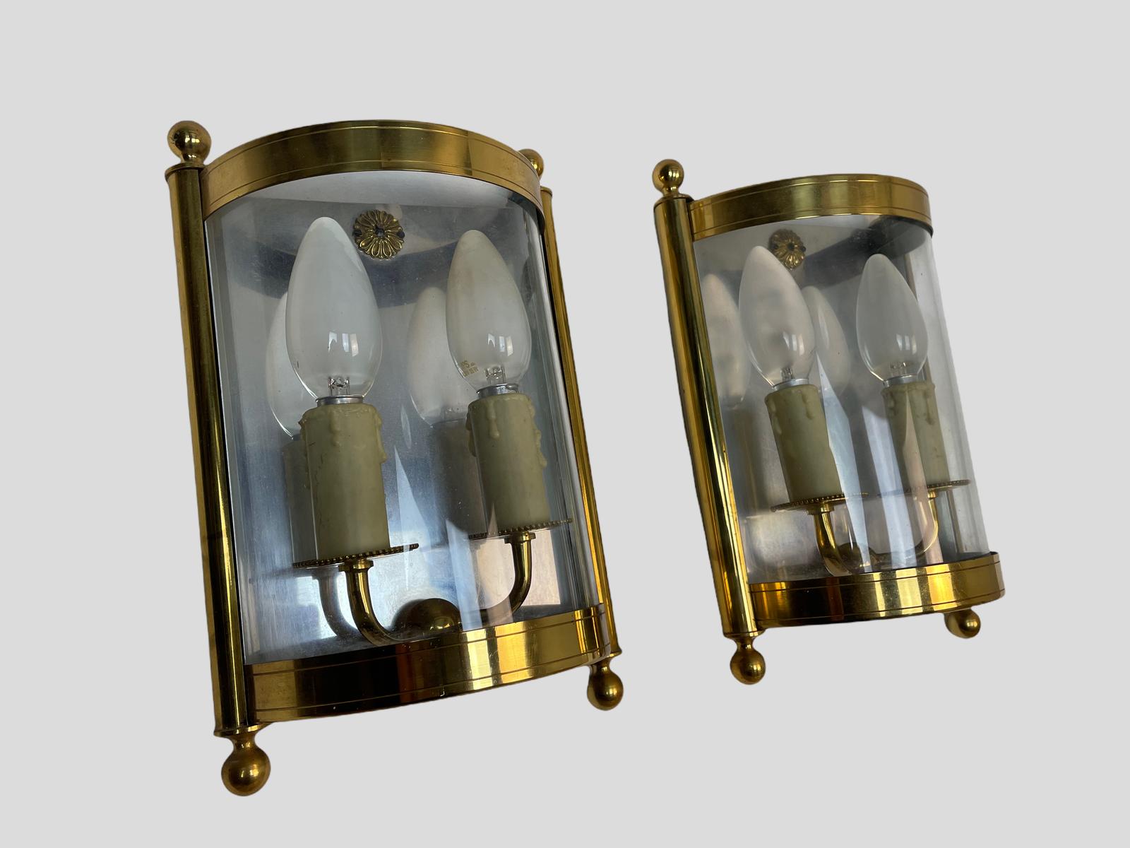 Vintage French Gilded Convex Wall Lanterns Sconces Mirrored Backs
