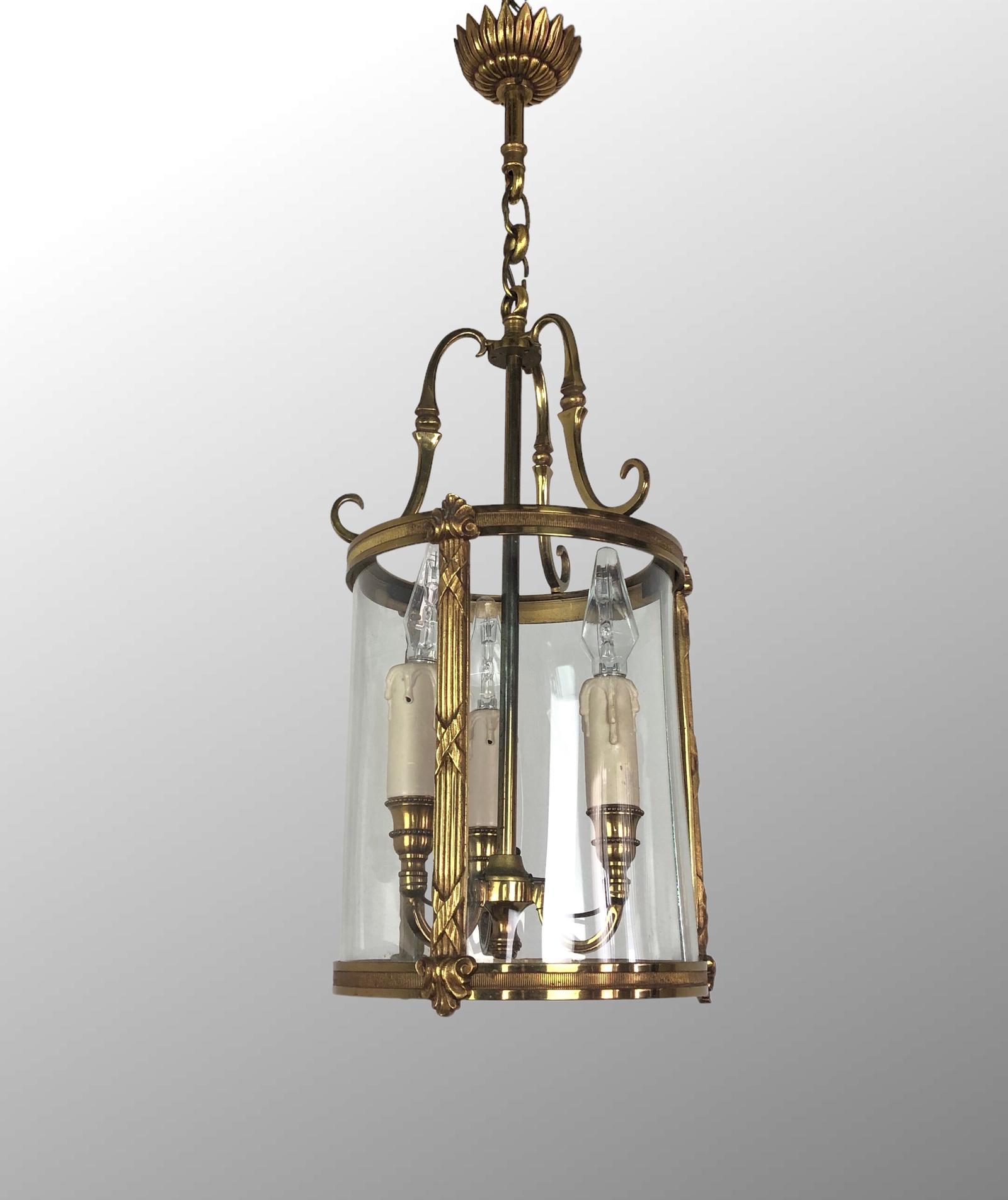 Vintage French Gilt Bronze Large Hall Lantern Glass Panels
