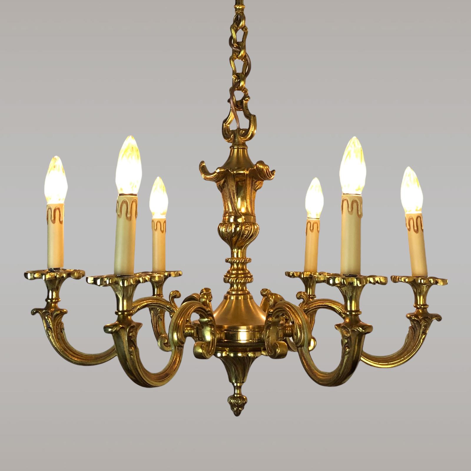 Vintage French Huge Louis Style Gilt Bronze 6 Arm Chandelier