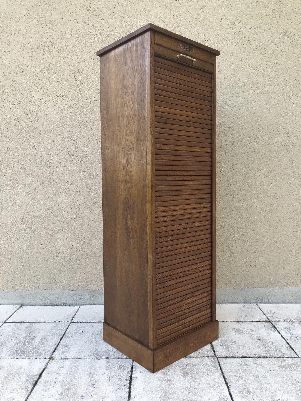 Vintage French Large Single Tambour Fronted Filing Cabinet