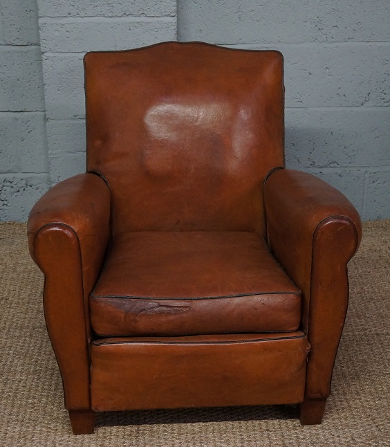 Vintage French Light Brown Leather Club Armchair