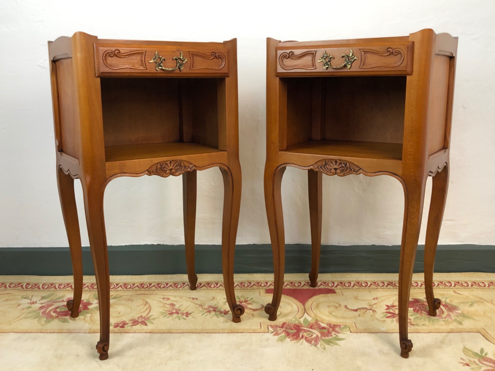 Vintage French Louis XV Style Cabinets Bedside Tables Cherrywood Nightstands