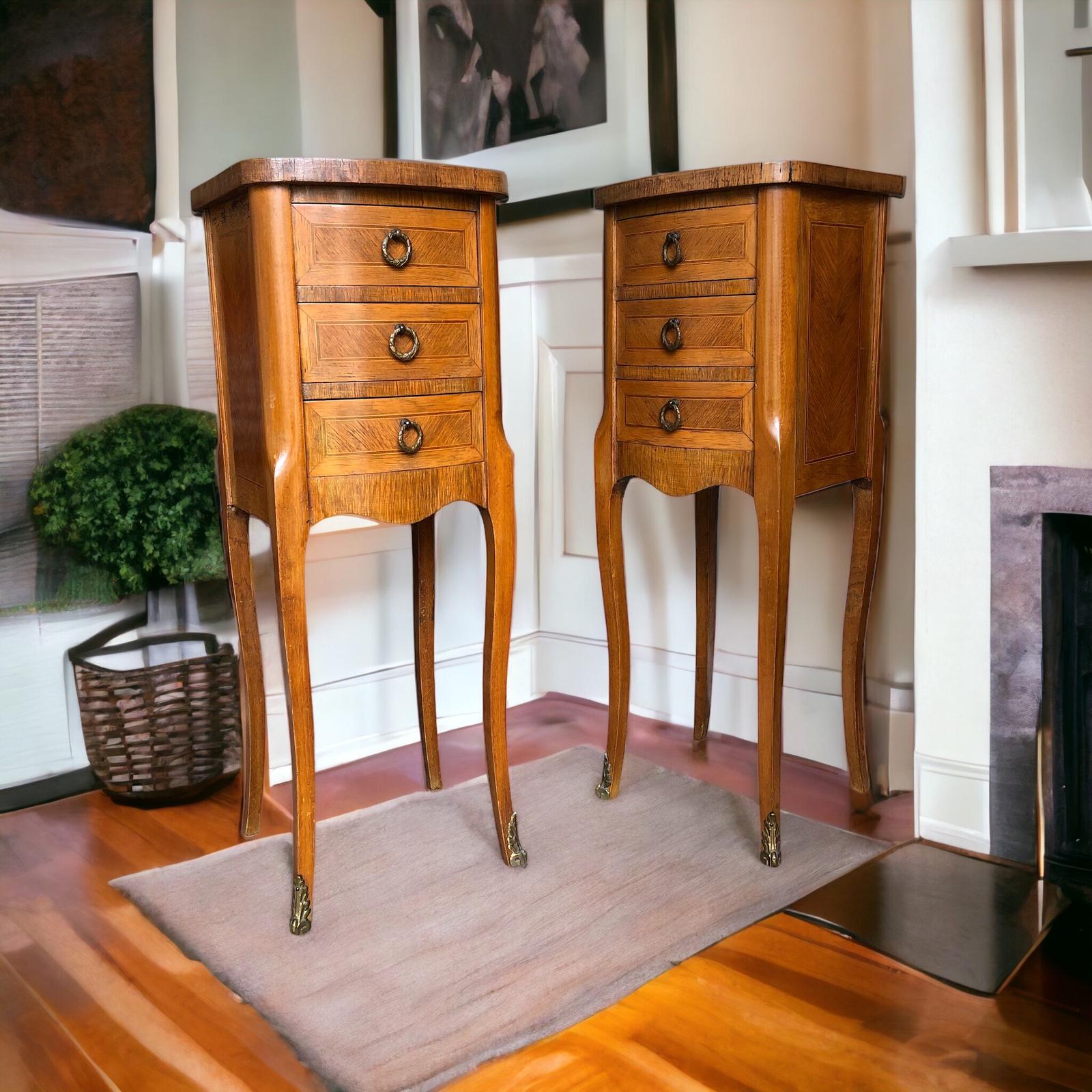 Vintage French Marquetry Bedside Tables Louis XVI Style