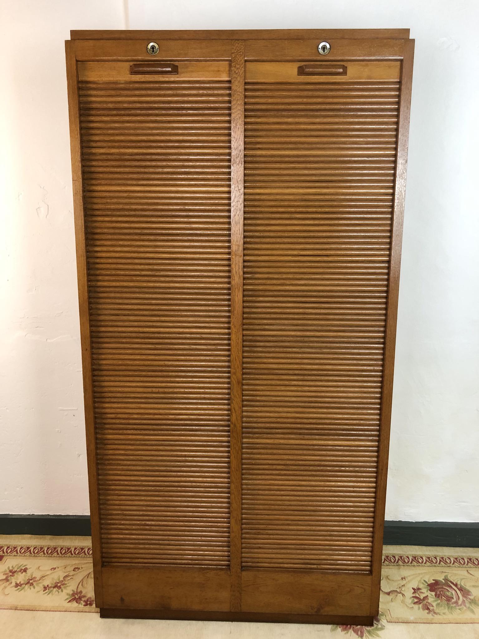 Vintage French Mid Century Double Filing Cabinet Tambour Roller Shutter by G Moreux