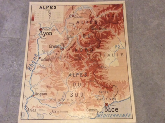 Vintage French Nailliers Double Sided School Map of the Alps & Pyrenees Showing Rivers, Mountains, Towns & Cities