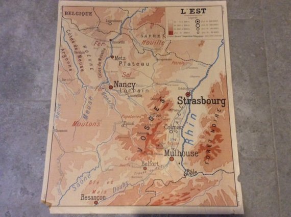 Vintage French Nailliers French Double Sided School Map of the French North East and East Showing Rivers, Mountains, Towns & Cities