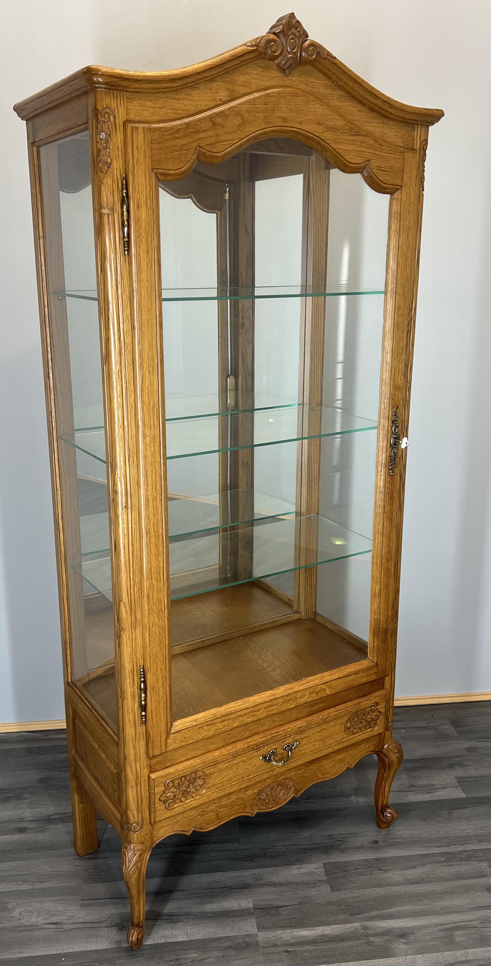 Vintage French Oak Glass Display Cabinet – Carved Vitrine / Shelves