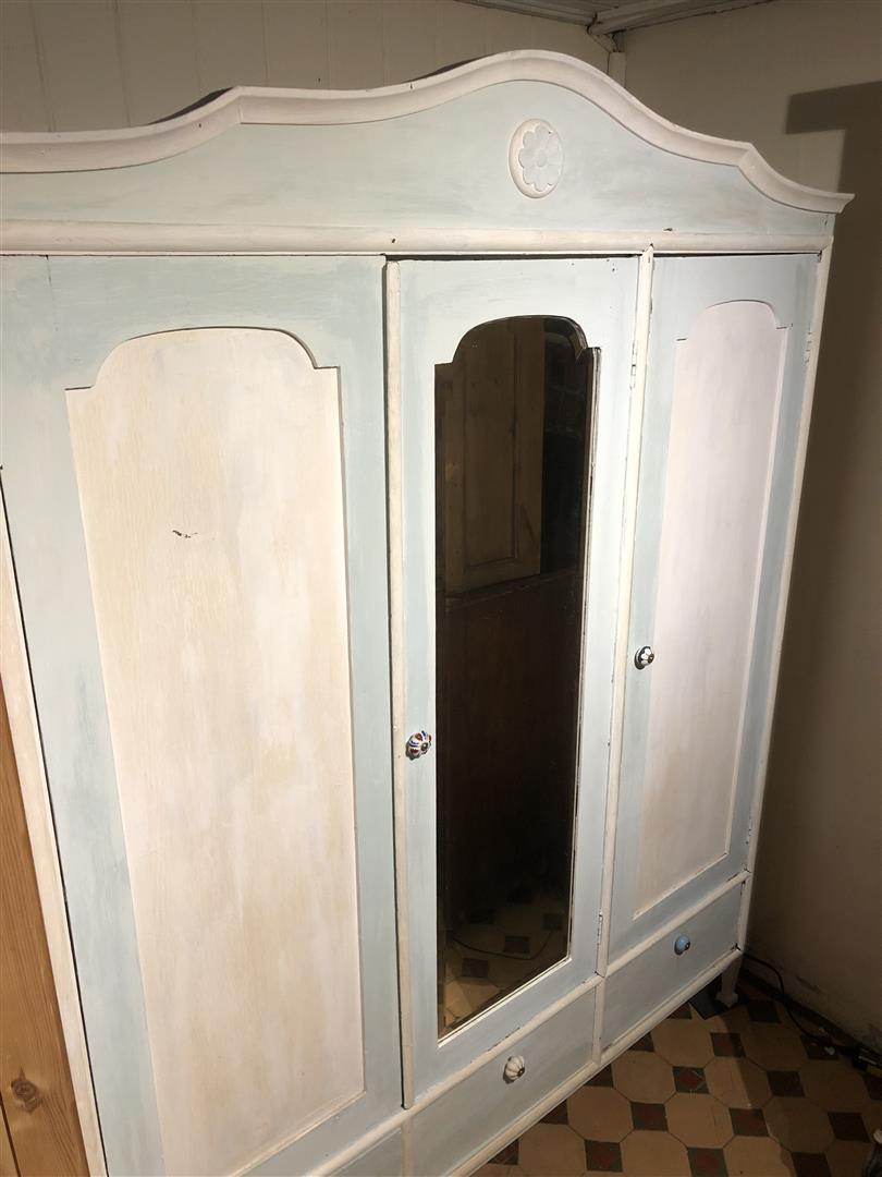 Vintage French Oak Triple Wardrobe Painted Blue & White Dismantles
