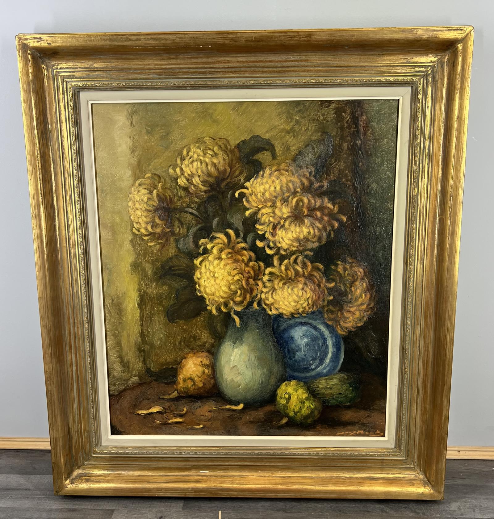 Vintage French Oil Painting Still Life Flowers Signed Gilt Frame (LOT 3874)