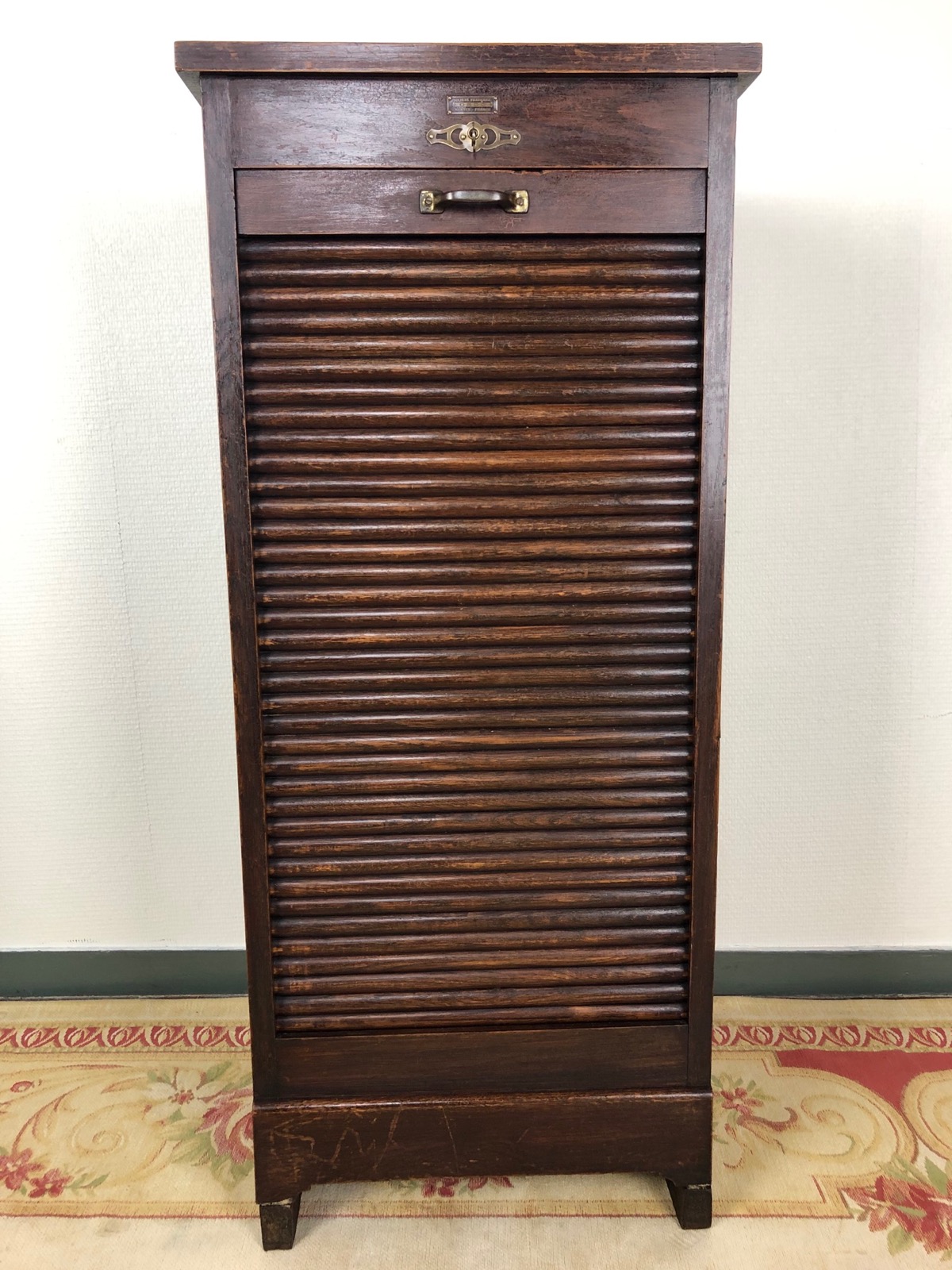Vintage French Petite Filing Cabinet Tambour Roller Shutter