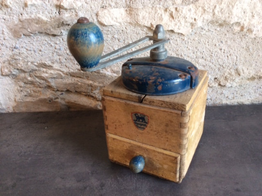 Vintage French Peugeot Wooden & Metal Coffee Grinder / Mill