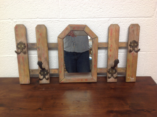 Vintage French Picket Gate Hallway Coat Hat / Rack with Mirror