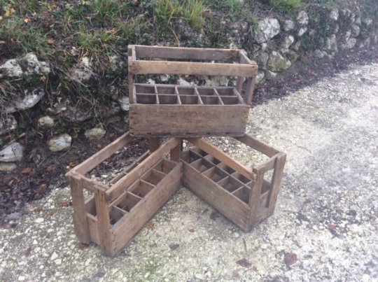 Vintage French Pine Poplar Wood 10 Bottle Wine Bottle Carriers Various Vineyard Retailer Names