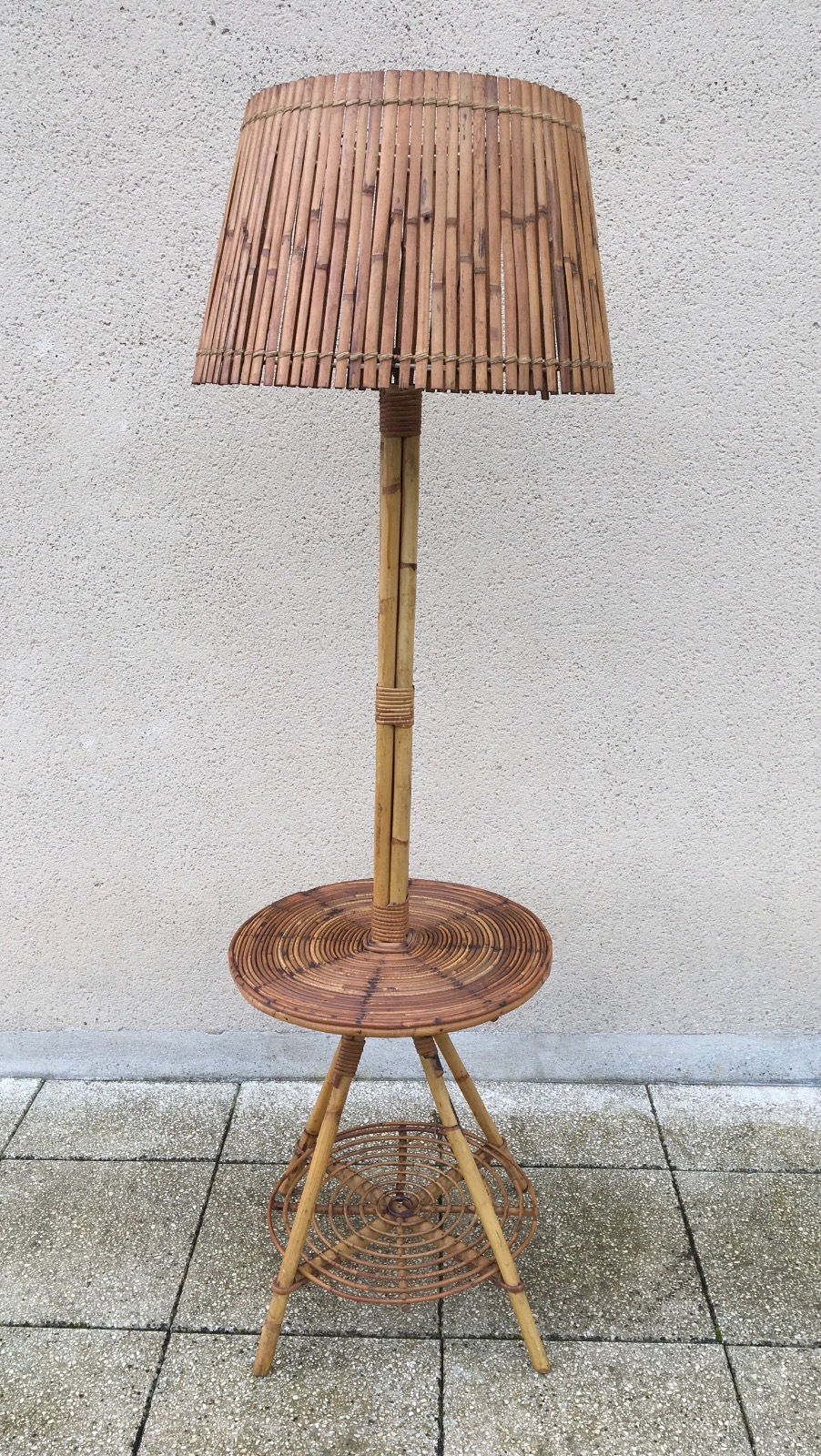 Vintage French Retro Bamboo Cane Standard Floor Lamp Minimalist Look