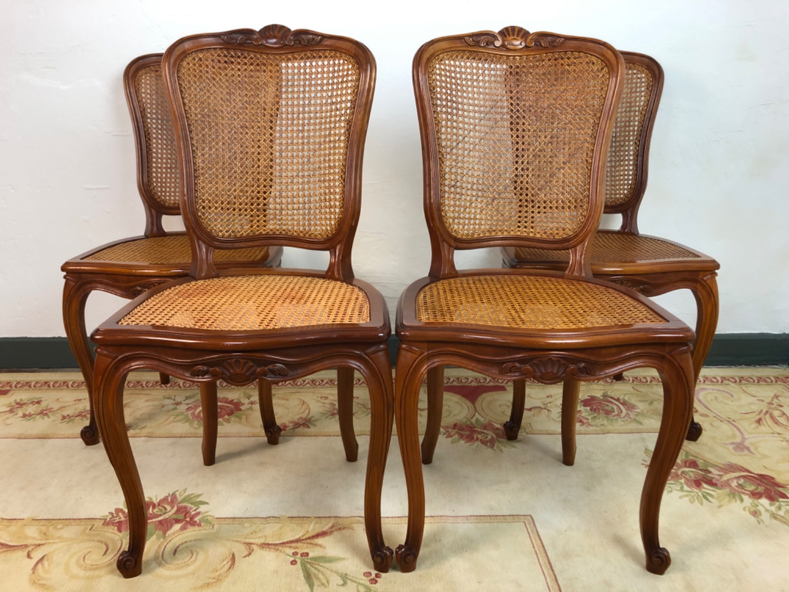 Vintage French Set of 4 Bergère Cane Dining Chairs