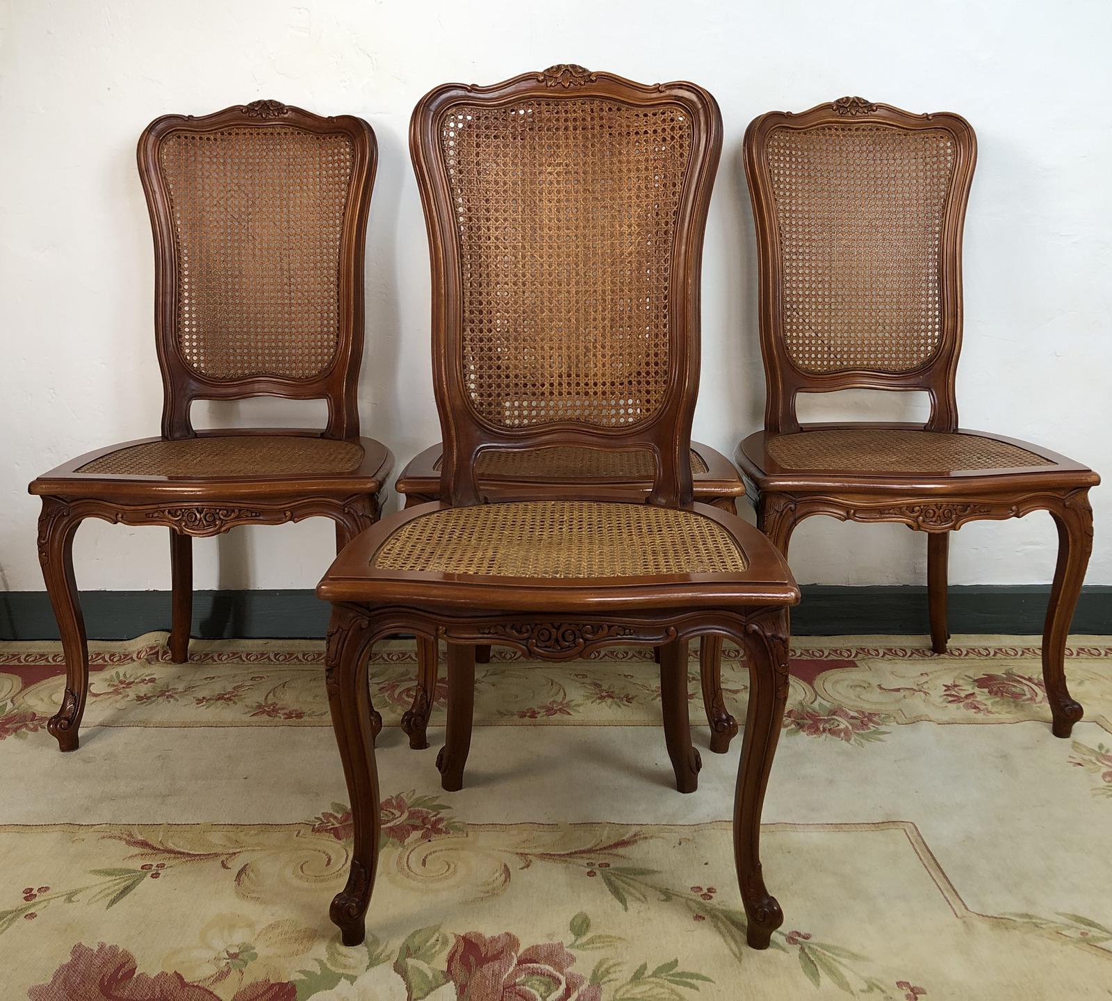 Vintage French Set of 4 Large Cherrywood Bergère Cane Dining Chairs Louis Style