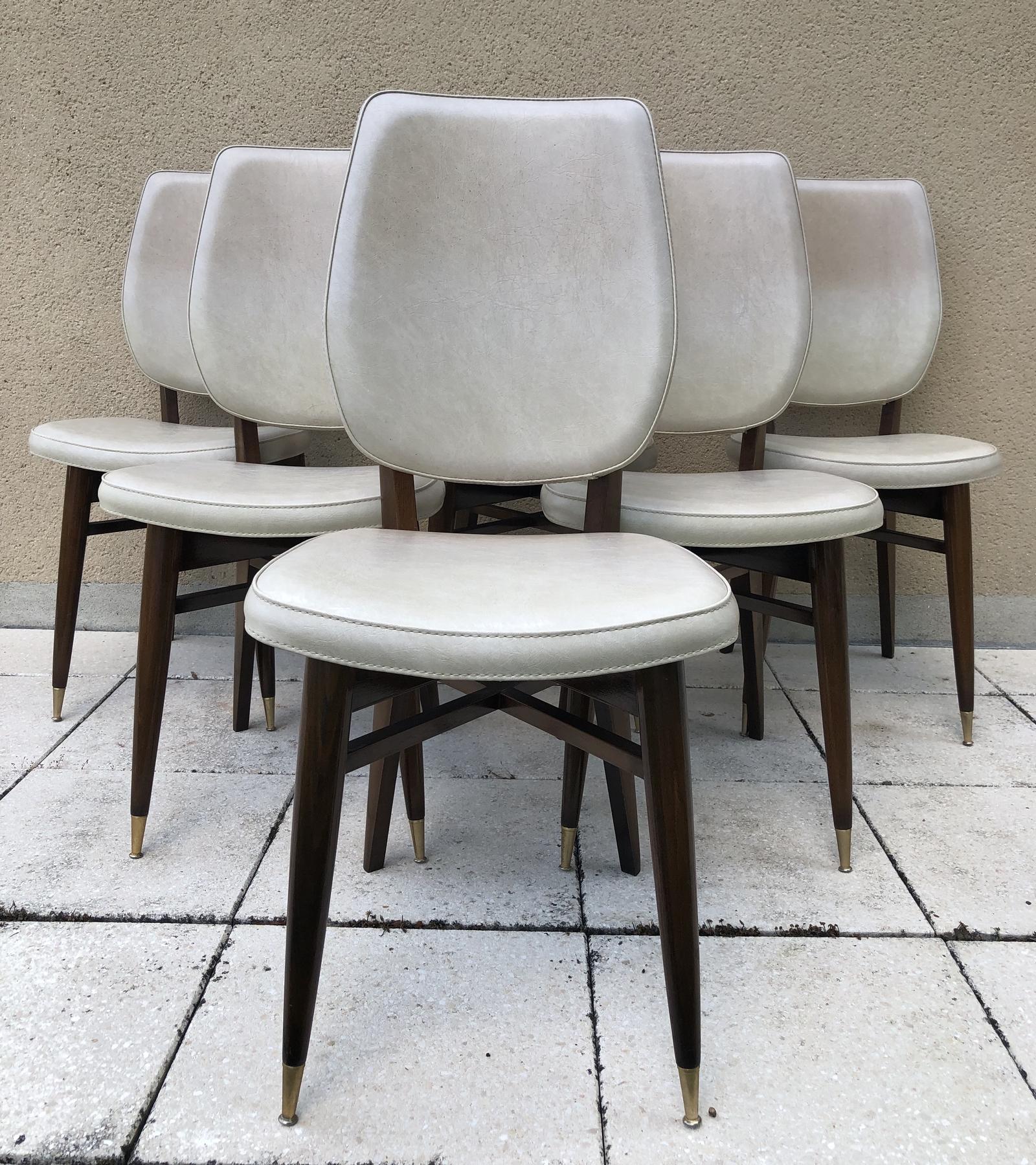 Vintage French Set of 6 Dining Chairs 1960s Mid Century