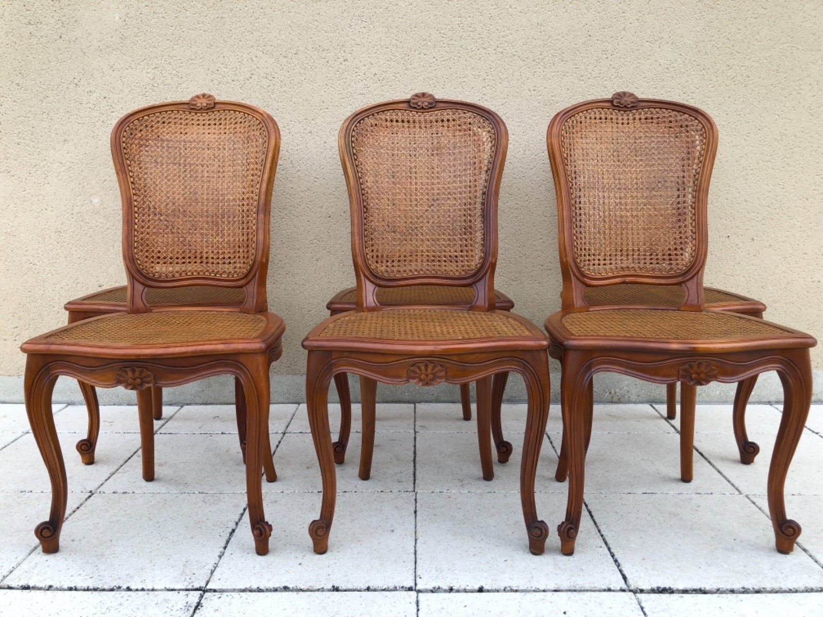 Vintage French Set of Six Bergère Cane Dining Chairs Louis XV Style