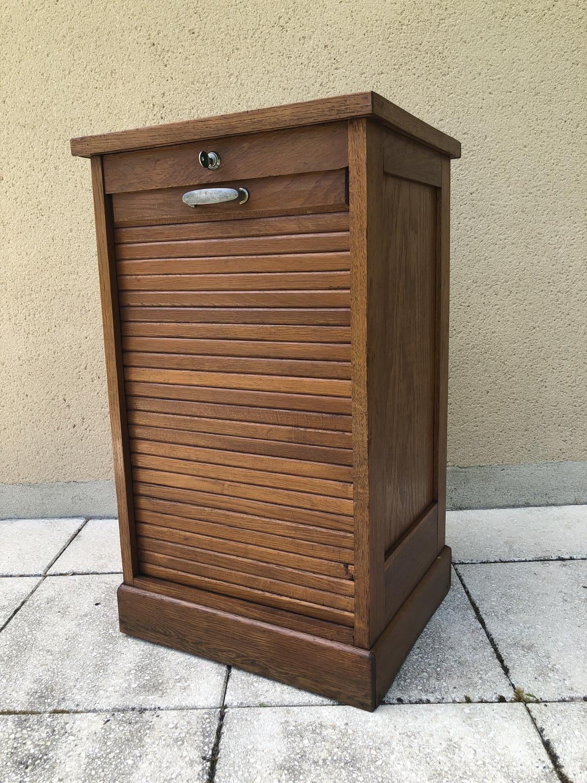Vintage French Small Size Filing Cabinet Oak Tambour