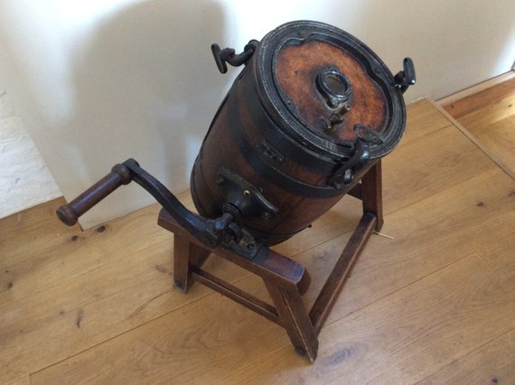 Vintage French Table Top Fruitwood Butter Churn Totally Complete & Works