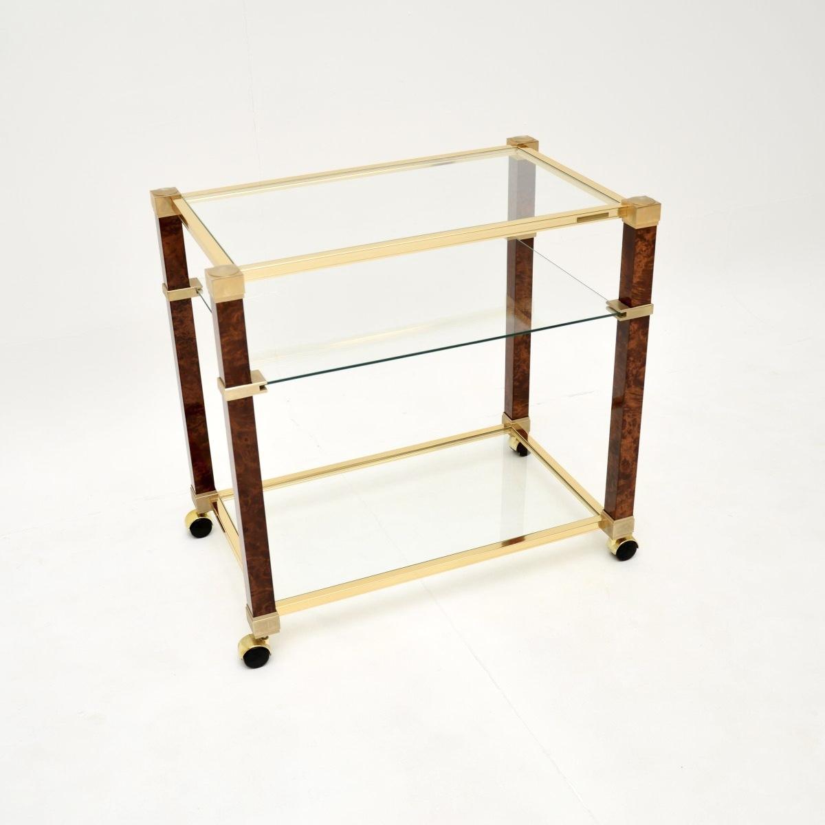 Vintage French Walnut & Brass Drinks Trolley by Pierre Vandel Paris