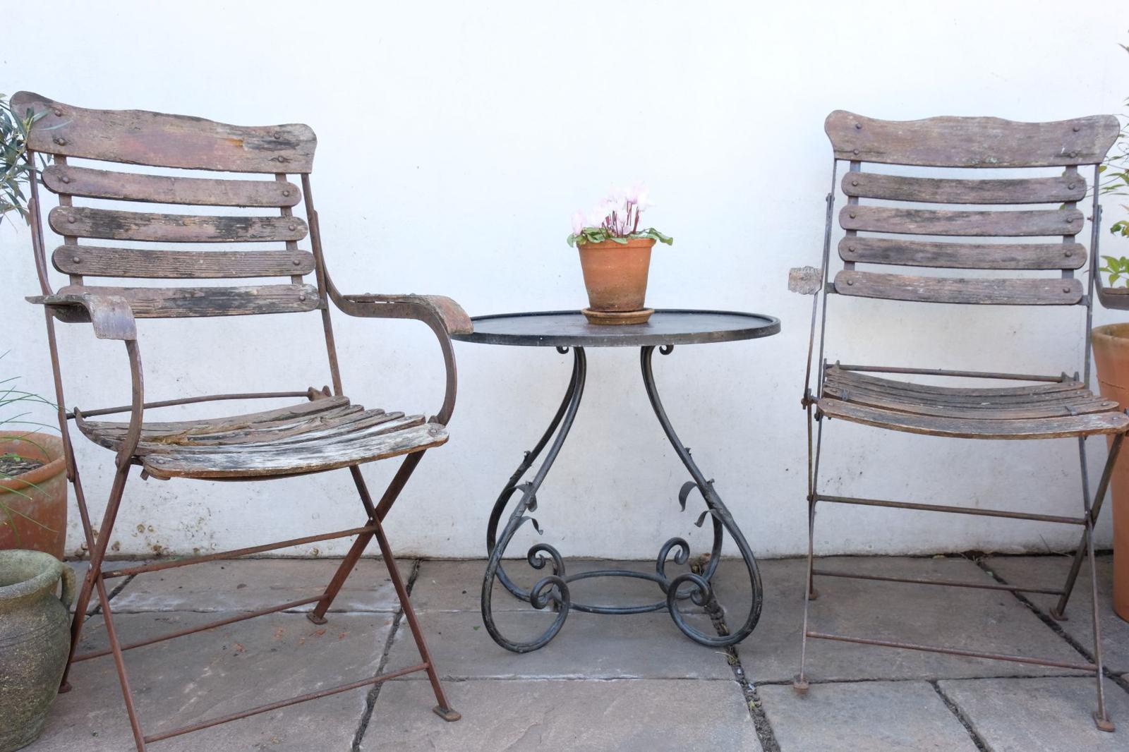 Vintage French Wrought Iron Table with Scroll Legs & Vine Leaves