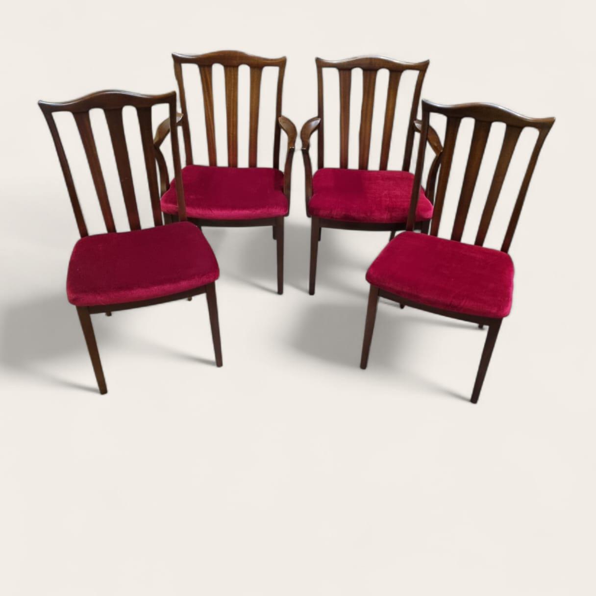A stylish and authentic set of four G Plan dining chairs, including two carvers, dating from the 1970s.