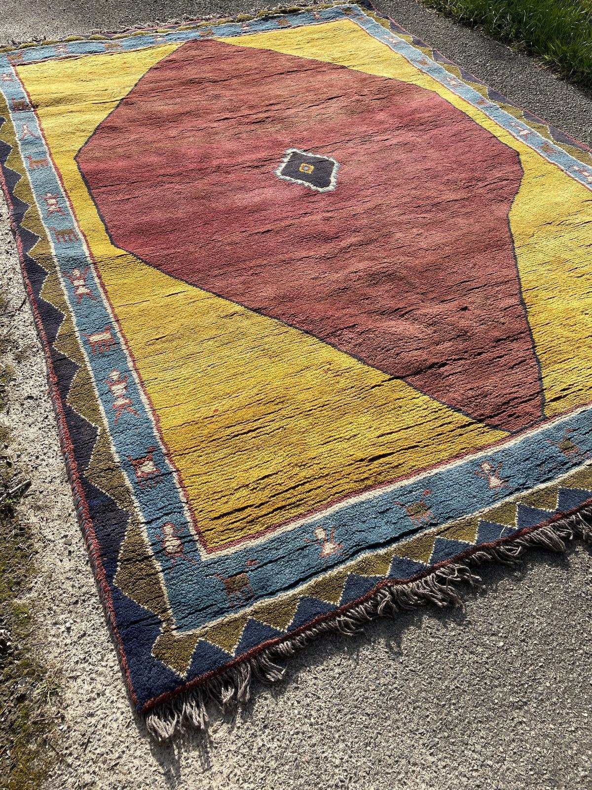 Vintage Gabbeh Persian Handmade Wool Rug Mustard & Cranberry