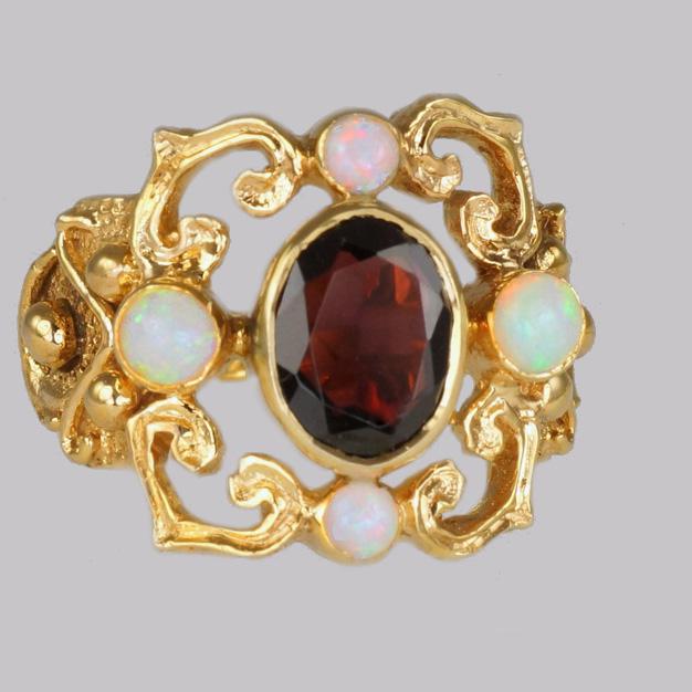 Vintage Garnet & Opal 9ct Gold Victorian Style Ring Ornate Antique Style Ring