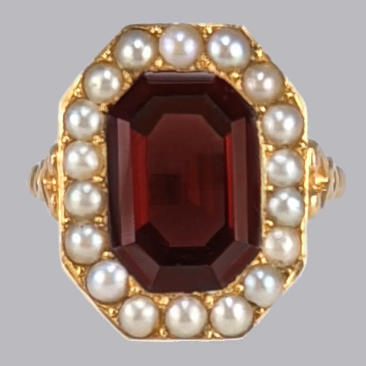 Vintage Garnet & Pearl Cluster Ring 18ct Rose Gold Large Victorian Style 1950s Ring