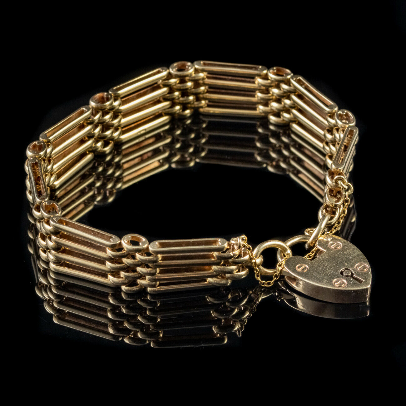 Vintage Gate Link Heart Lock Bracelet 9ct Gold Dated 1967