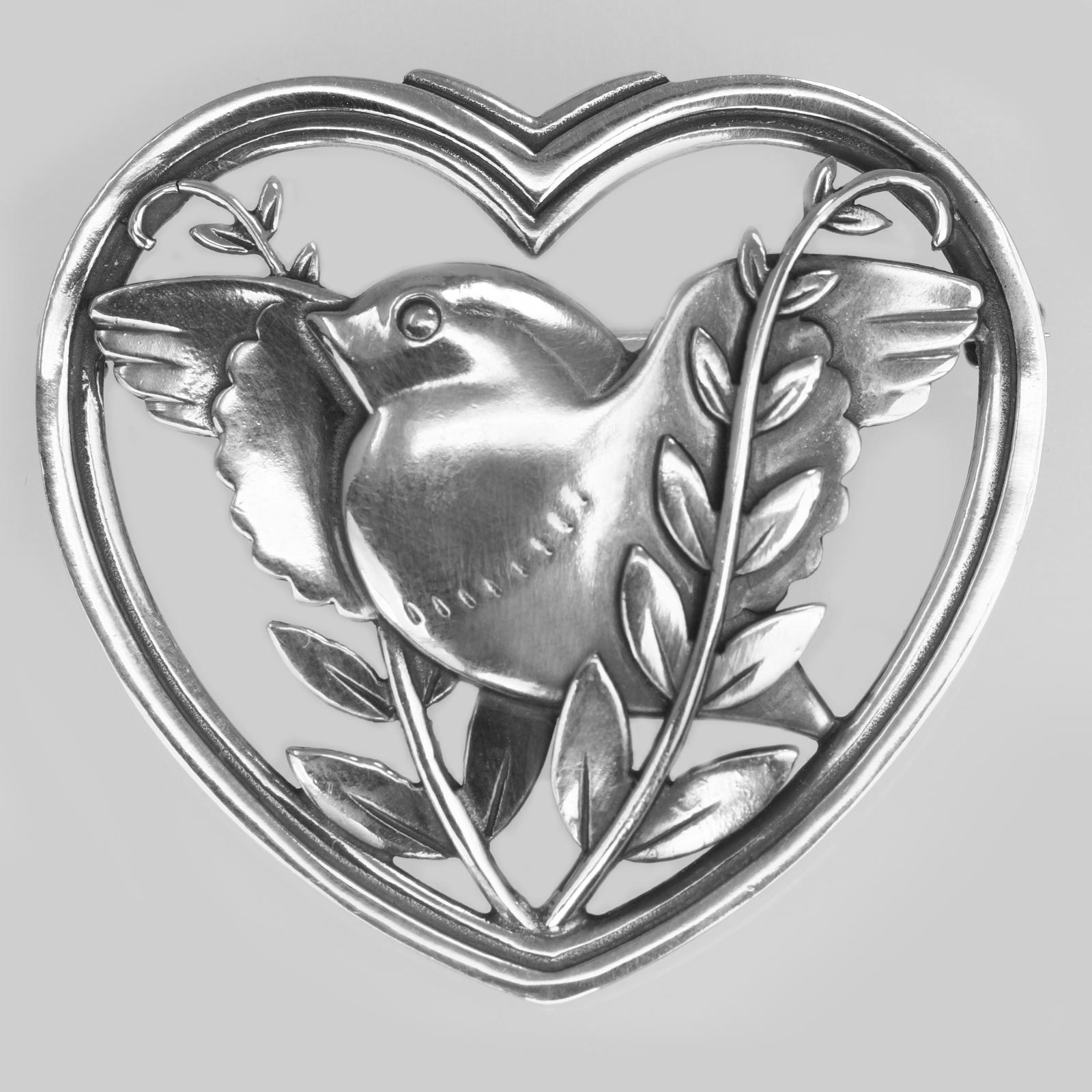 Vintage Georg Jensen Robin in a Heart Brooch Arno Malinowski 1930s Silver 283 Brooch