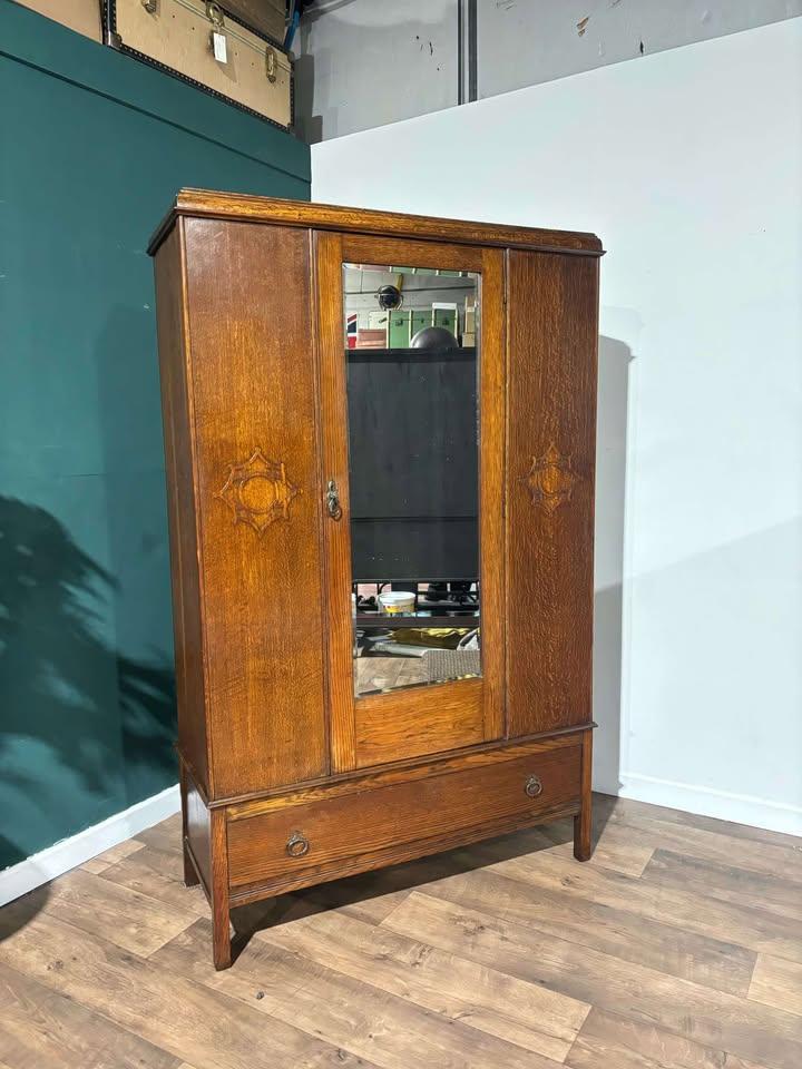 Vintage George V Mirrored Oak Double Wardrobe (1 of 16)
