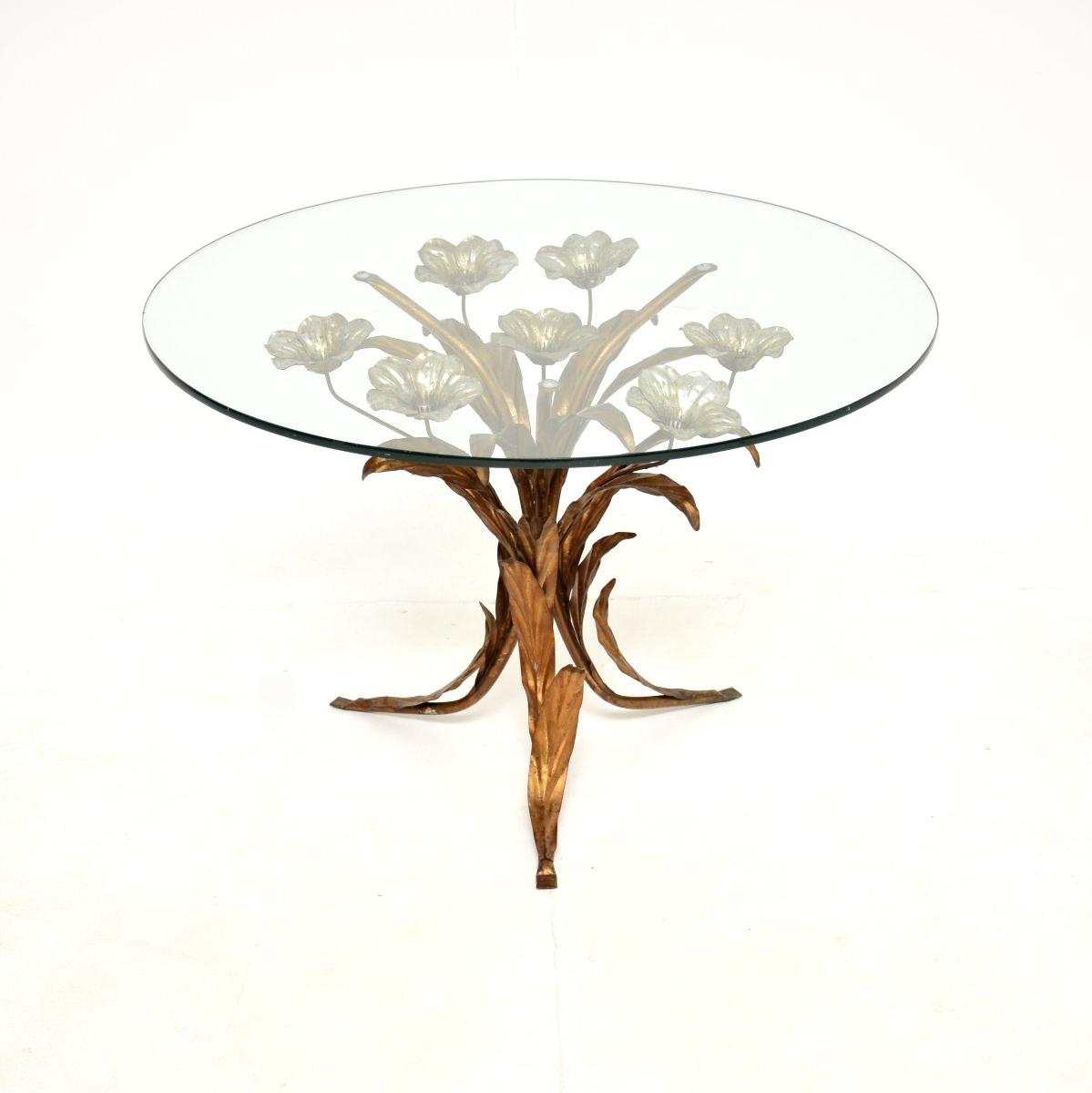 A stunning vintage gilt metal coffee table by Hans Kogl, made in Germany and dating from the 1960s. It is beautifully designed and is of wonderful quality. The frame has gorgeous floral designs and is finished mostly in gold, with silvered flowers. It supports a clear circular toughened glass top. The condition is excellent for its age, with just some minor surface wear to the gold finish and some minor surface wear to the glass. Width – 76cm, 30 inches Depth – 76cm, 30 inches Height – 51cm, 19 inches