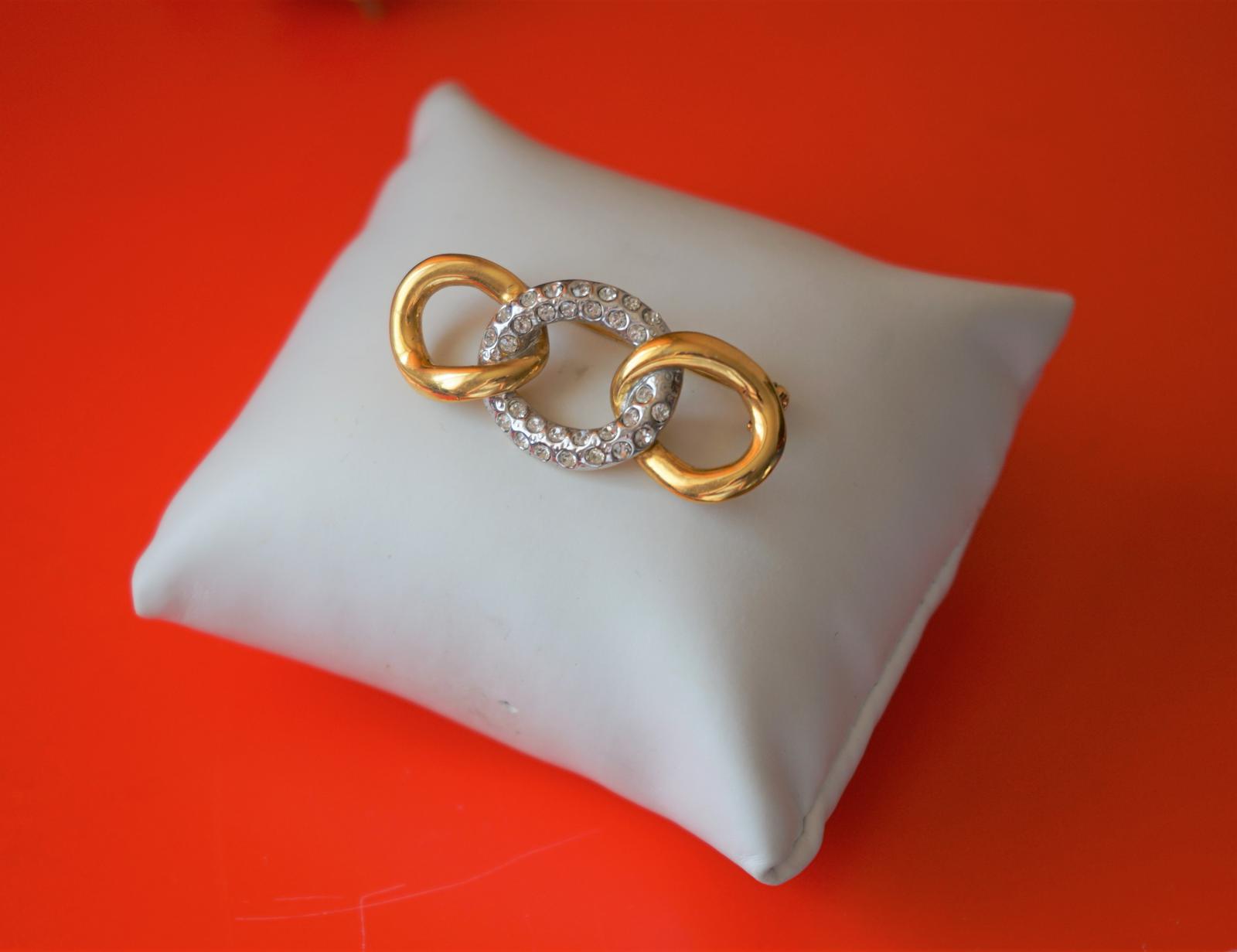 Vintage Gilt Three Ring Rhinestone  Brooch (1 of 5)