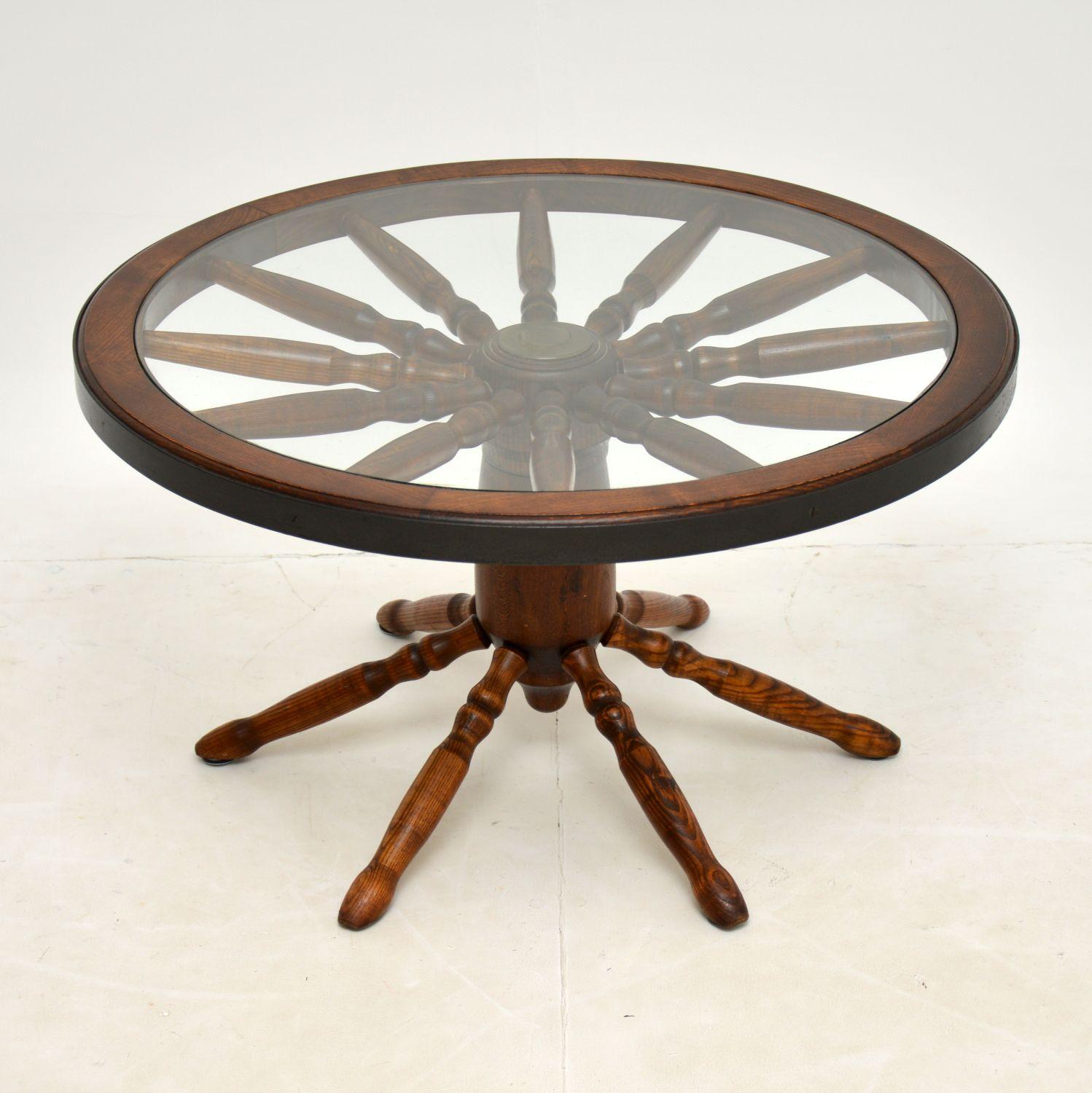 Vintage Glass Top Wagon Wheel Coffee Table (1 of 6)