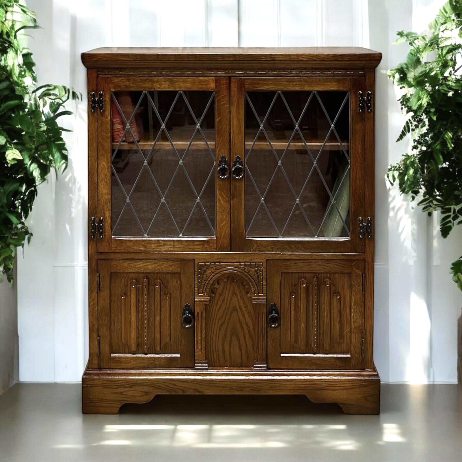 Vintage Glazed Bookcase & Cabinet by Jaycee Furniture / Light Oak Drinks Cocktail Cabinet 1970s