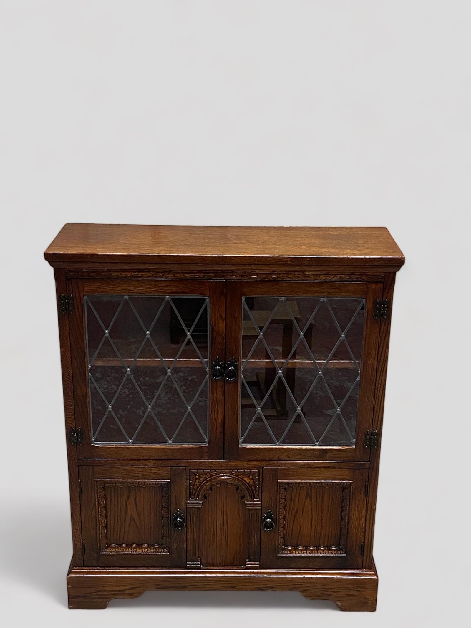 Vintage Glazed Bookcase & Cabinet by Jaycee Furniture / Light Oak Drinks Cocktail Cabinet / Made in England / Dated 1970s
