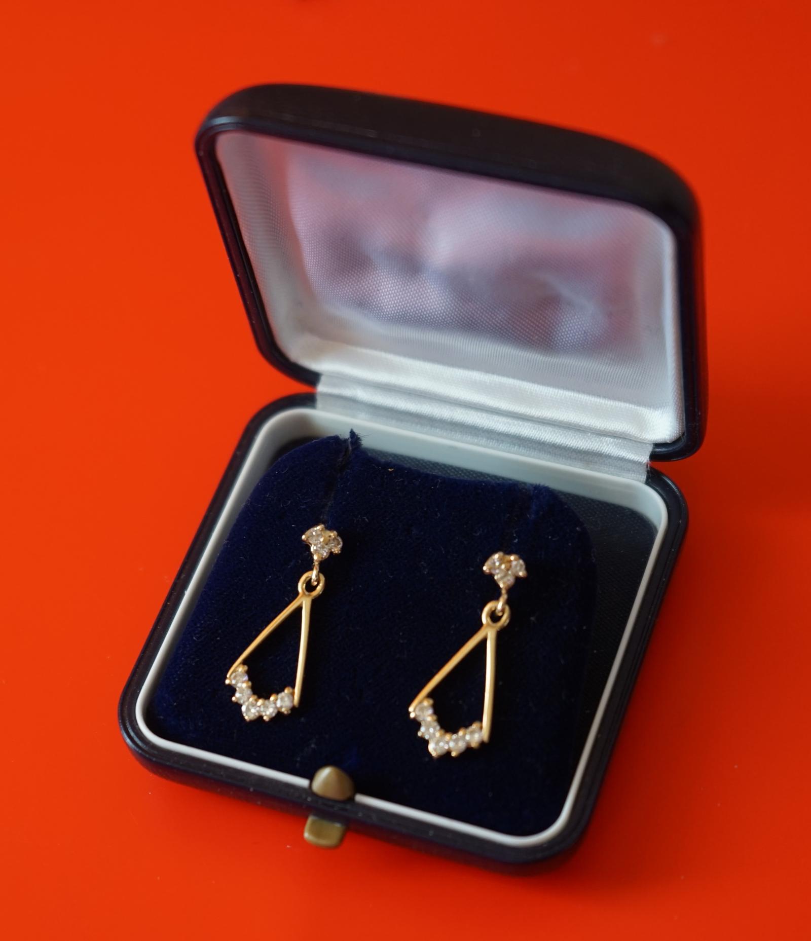 Vintage Gold Plated Rhinestone Drop Earrings Boxed (1 of 6)