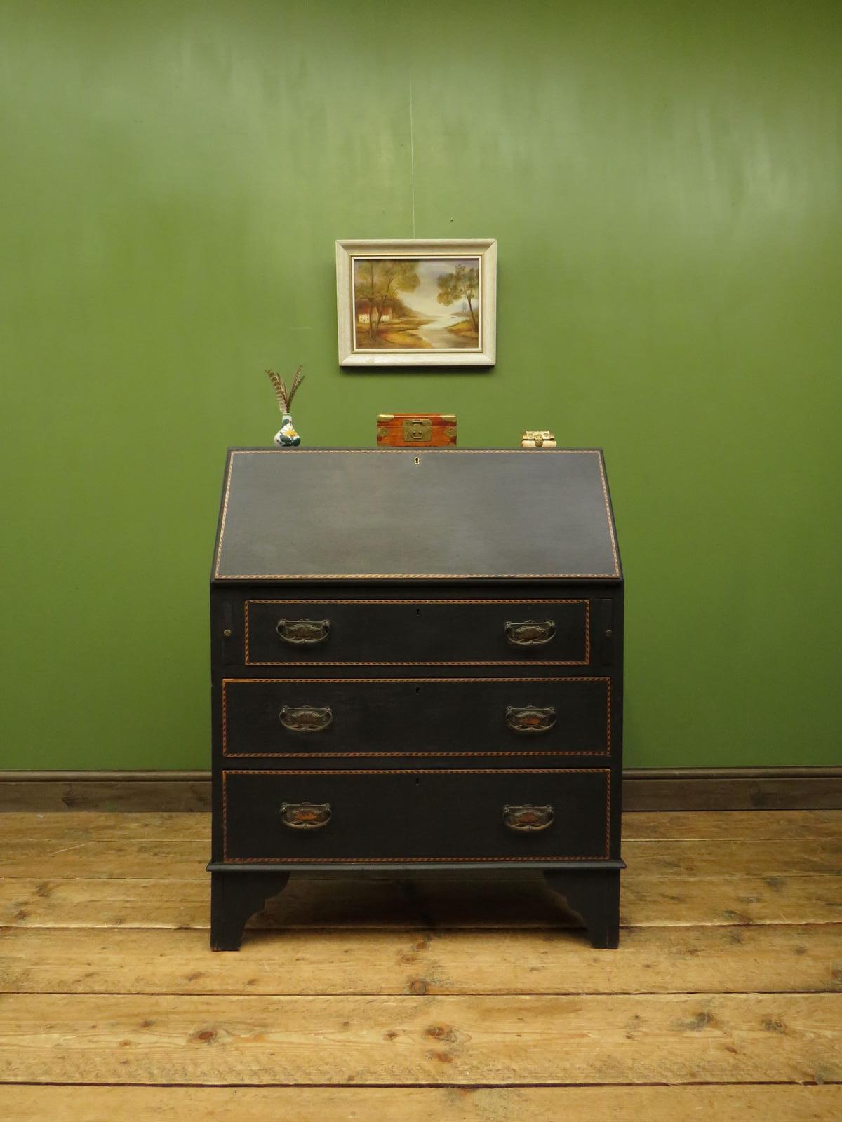 Vintage Gothic Black Painted Writing Bureau with Fall Front